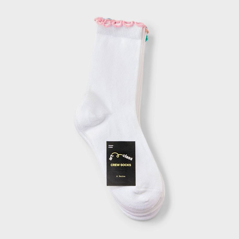Girls' 6pk Lettuce Edge Crew Socks - art class™ White M