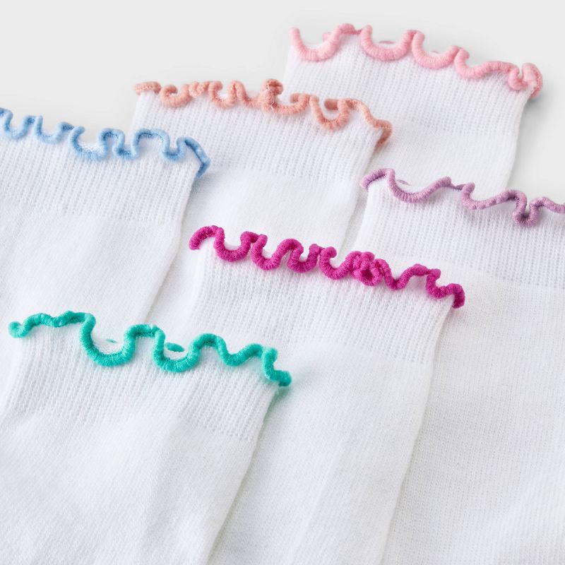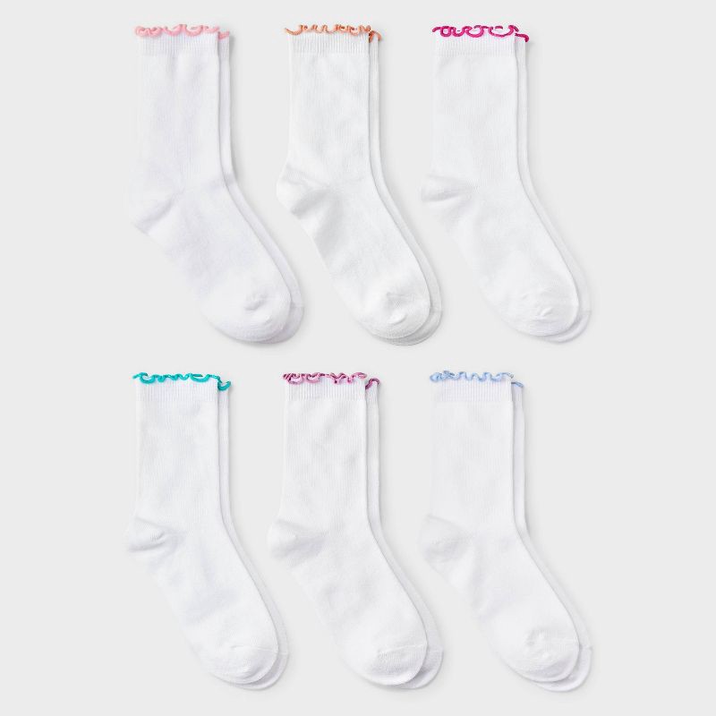 Girls' 6pk Lettuce Edge Crew Socks - art class™ White S
