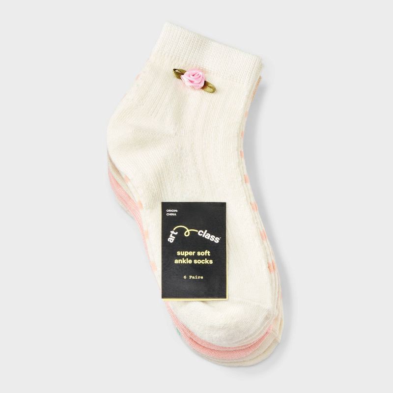 Girls' 6pk Rosette Ankle Socks - art class™ Oatmeal M