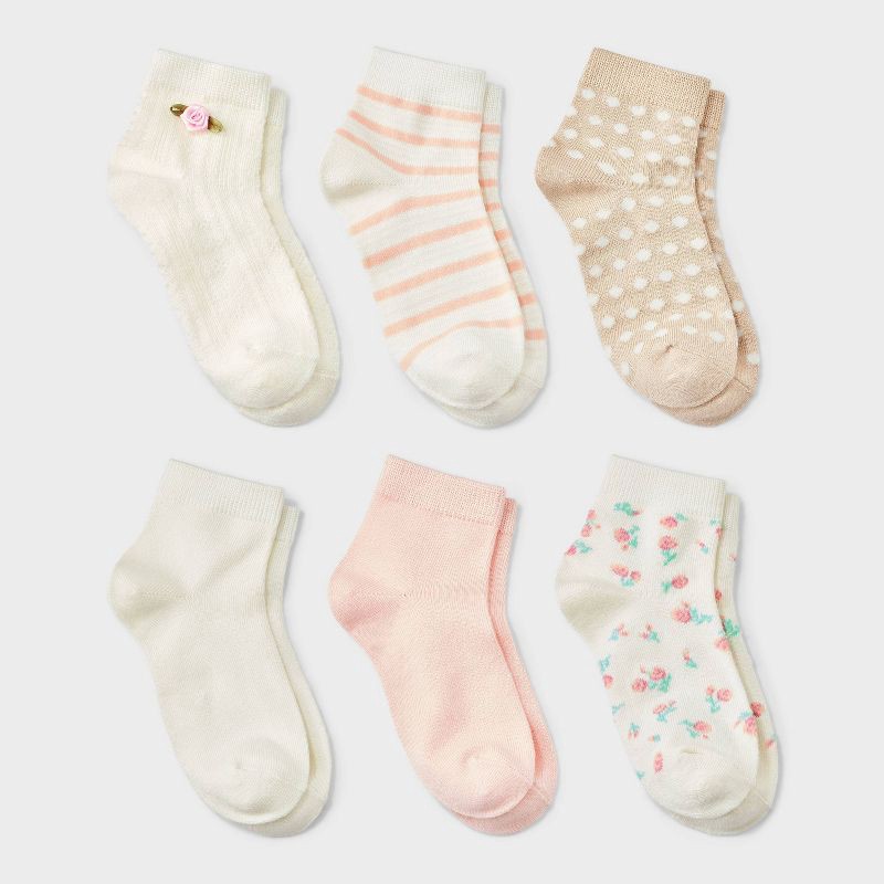 Give your child plenty of adorable options with these Rosette Ankle Socks from art class™. This six-pack set includes ankle socks in assorted colors featuring a variety of designs — solid shades, flor…