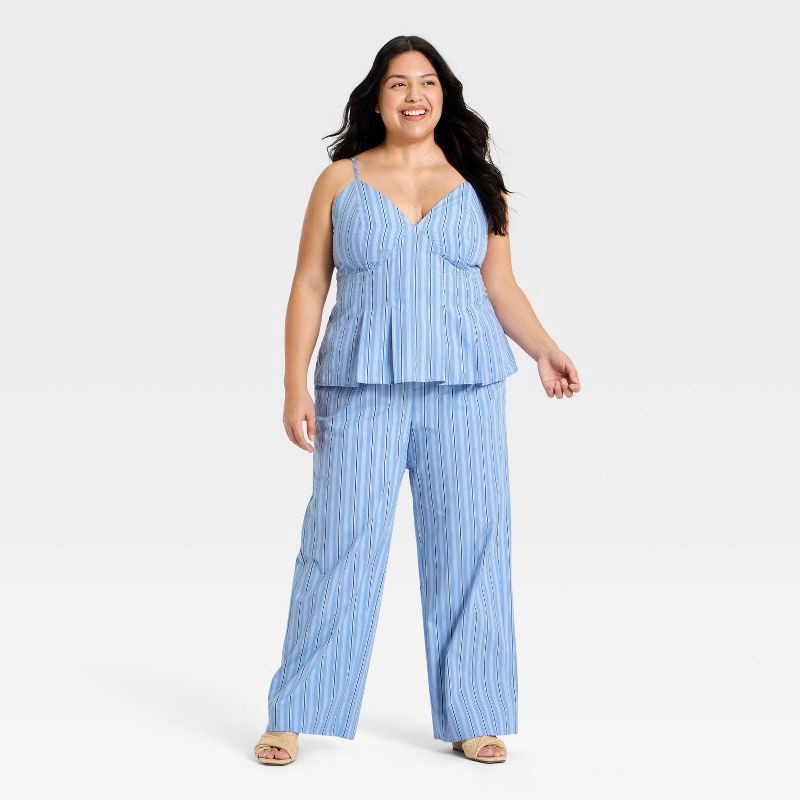 Women's Mid-Rise Poplin Straight Leg Pull-On Pants - A New Day™ Blue Striped XXL