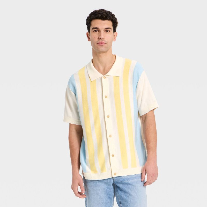 Men's Easter Capsule Collared Cardigan - Goodfellow & Co™ Yellow Striped XXL