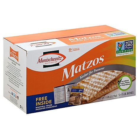 Kosher for Passover, Manischewitz original matzos are perfect for Seder dinner. With a cracker-like crunch and a mild taste, this unleavened bread can be enjoyed on its own or topped with your favorit…