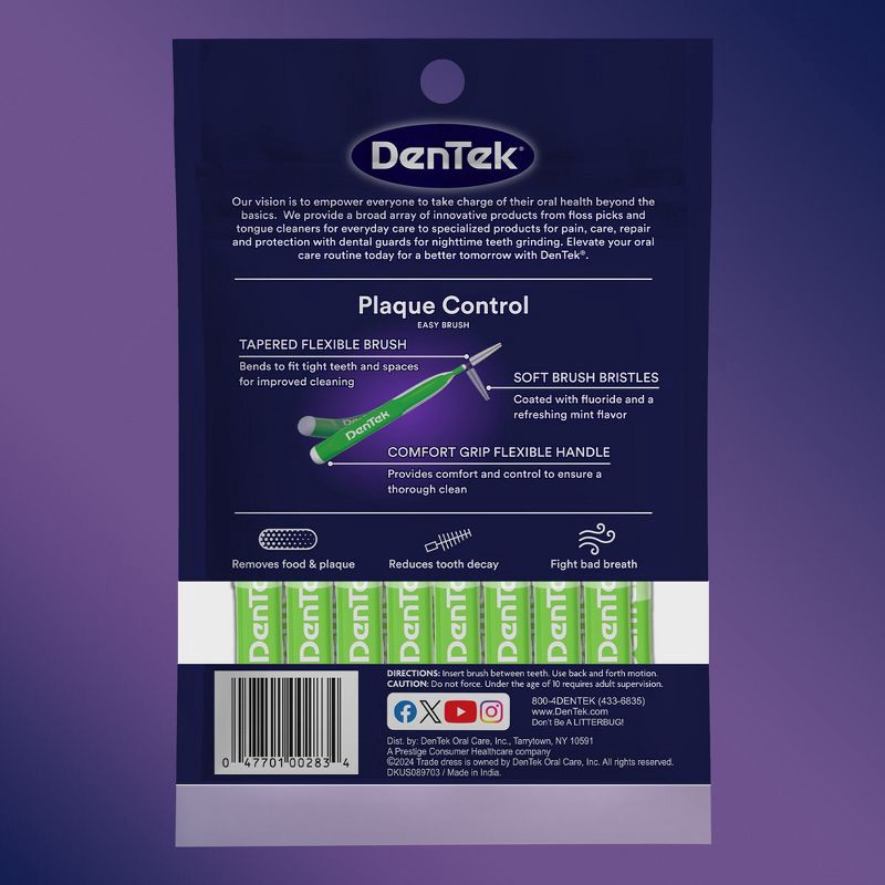 - DenTek Easy Brush Plaque Control Interdental Cleaners with tight fit brushes in between teeth, interdental spaces or dental appliances