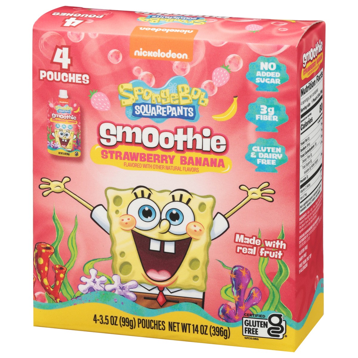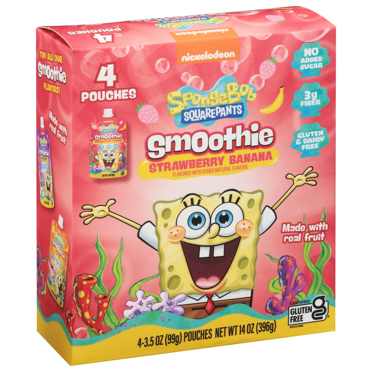 SpongeBob SquarePants Strawberry Banana Smoothie - 4 x 3.5 oz Pouches