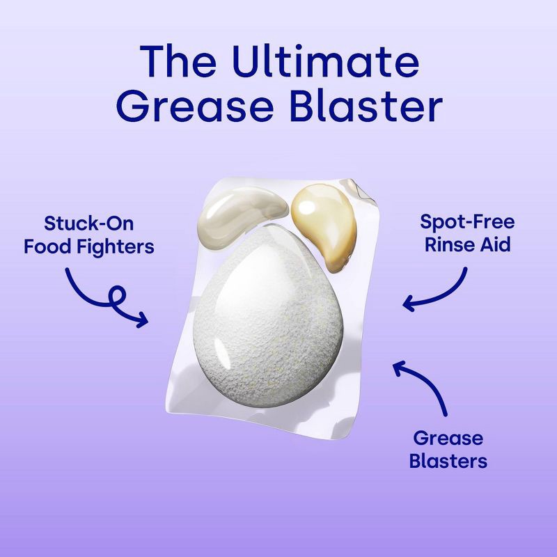 - Triple-chamber design includes powerful surfactants to cut through tough grease; targeted enzymes to blast away 24-hour stuck-on food and stains; and a spot-free rinse aid to leave glassware sparkling