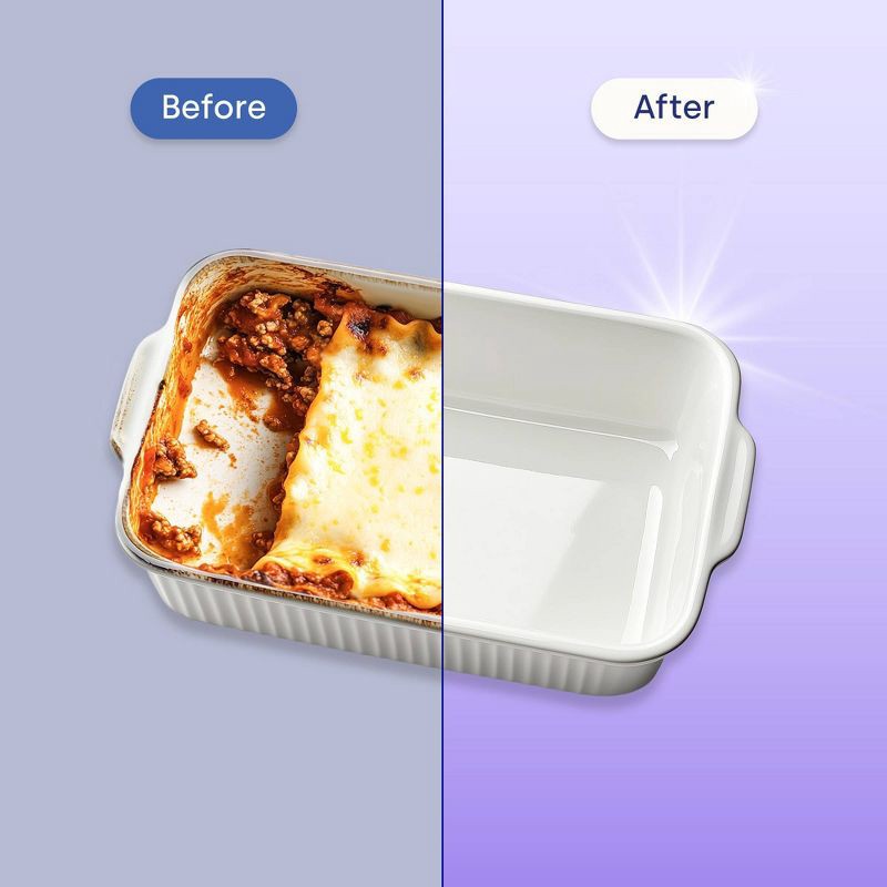 Product Results: Removes Residue, Dissolves Food, Eliminates Stains, Removes Grease, Streak-Free Glass