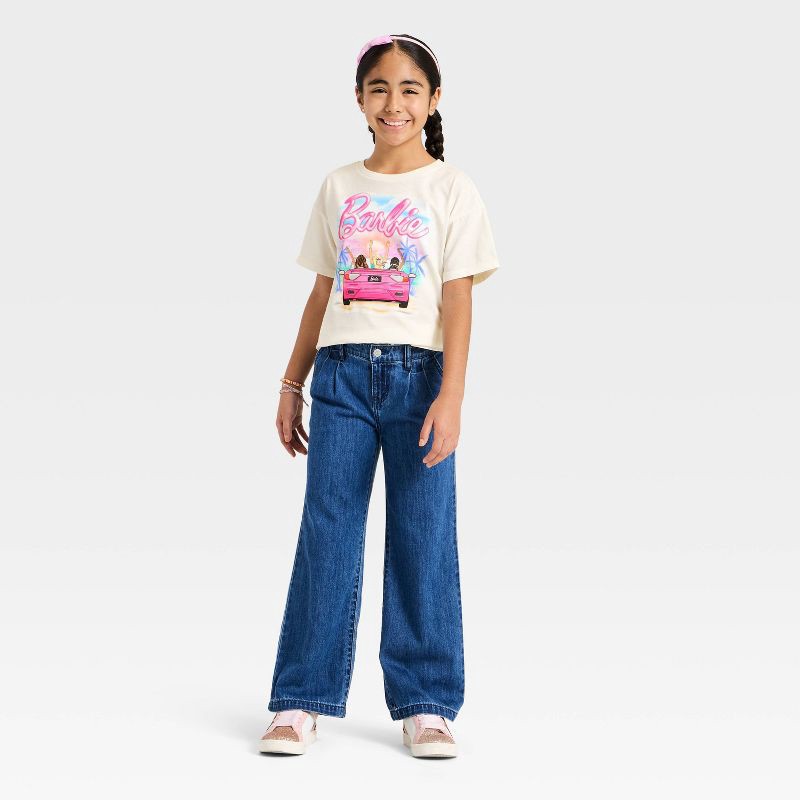 Girls' Barbie Airbrush Graphic Oversized Short Sleeve T-Shirt - White M