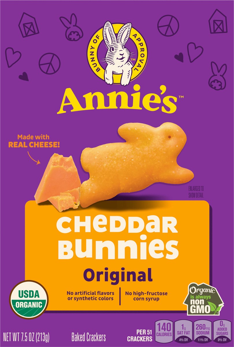 It's time to bite into cheesy, crunchy goodness! Annie's Organic Cheddar Bunnies Baked Snack Crackers are delicious baked bites of yum that everybunny can agree on. This is not your typical, boring sn…