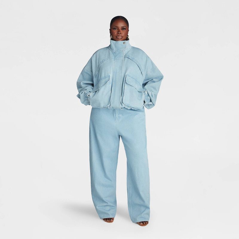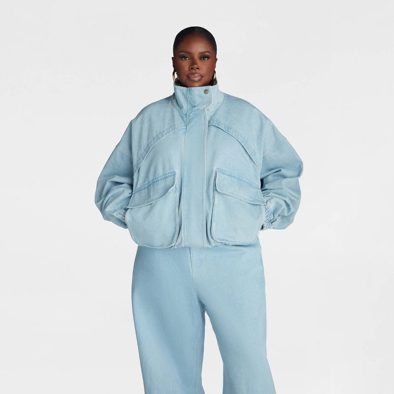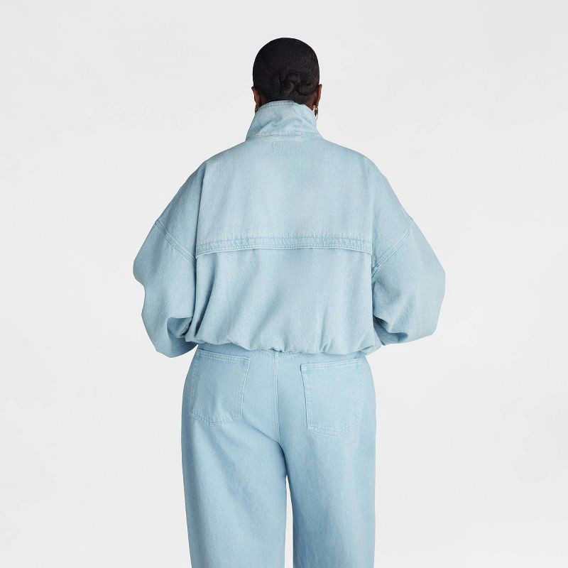 A denim jacket that delivers, this 1980s-inspired bomber is made from premium denim and designed for an oversized blouson fit. All in the details, it features a stand-up collar, unique yoke detail, su…