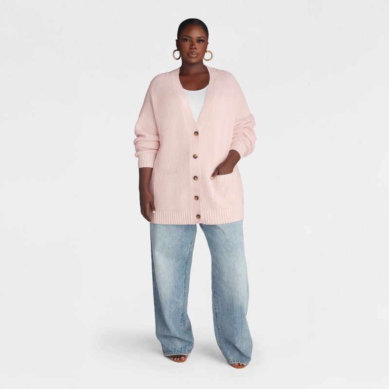 Our best-selling cardigan silhouette from fall, back in new colors for this season! This wool-blend piece is made from a waffle knit pattern and is designed with yarn-dyed stripes at the hem and an ov…