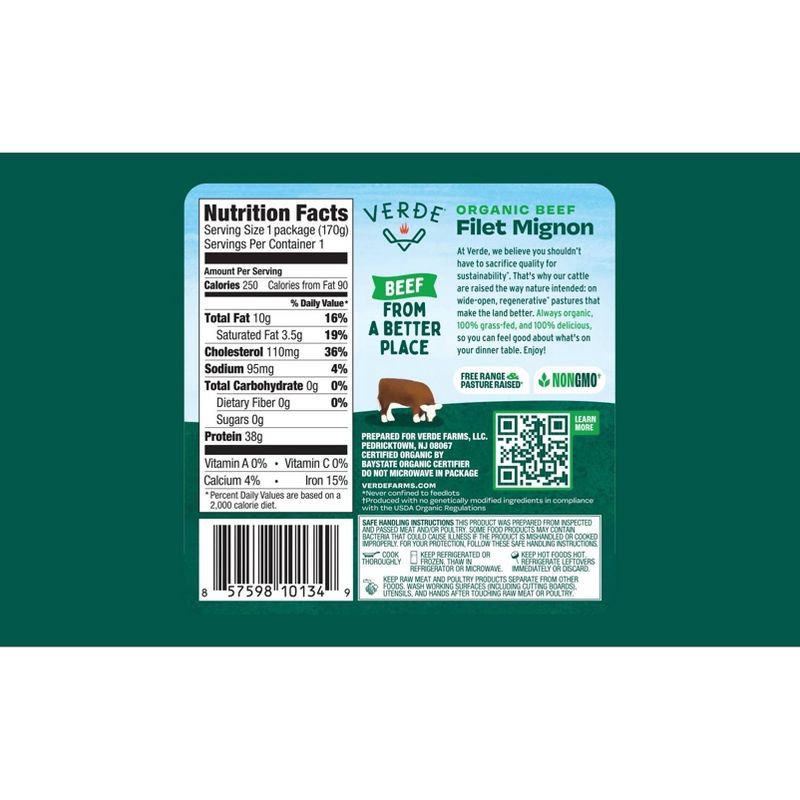 Verde Farms Organic 100% Grass-Fed Boneless Beef Filet - 6oz