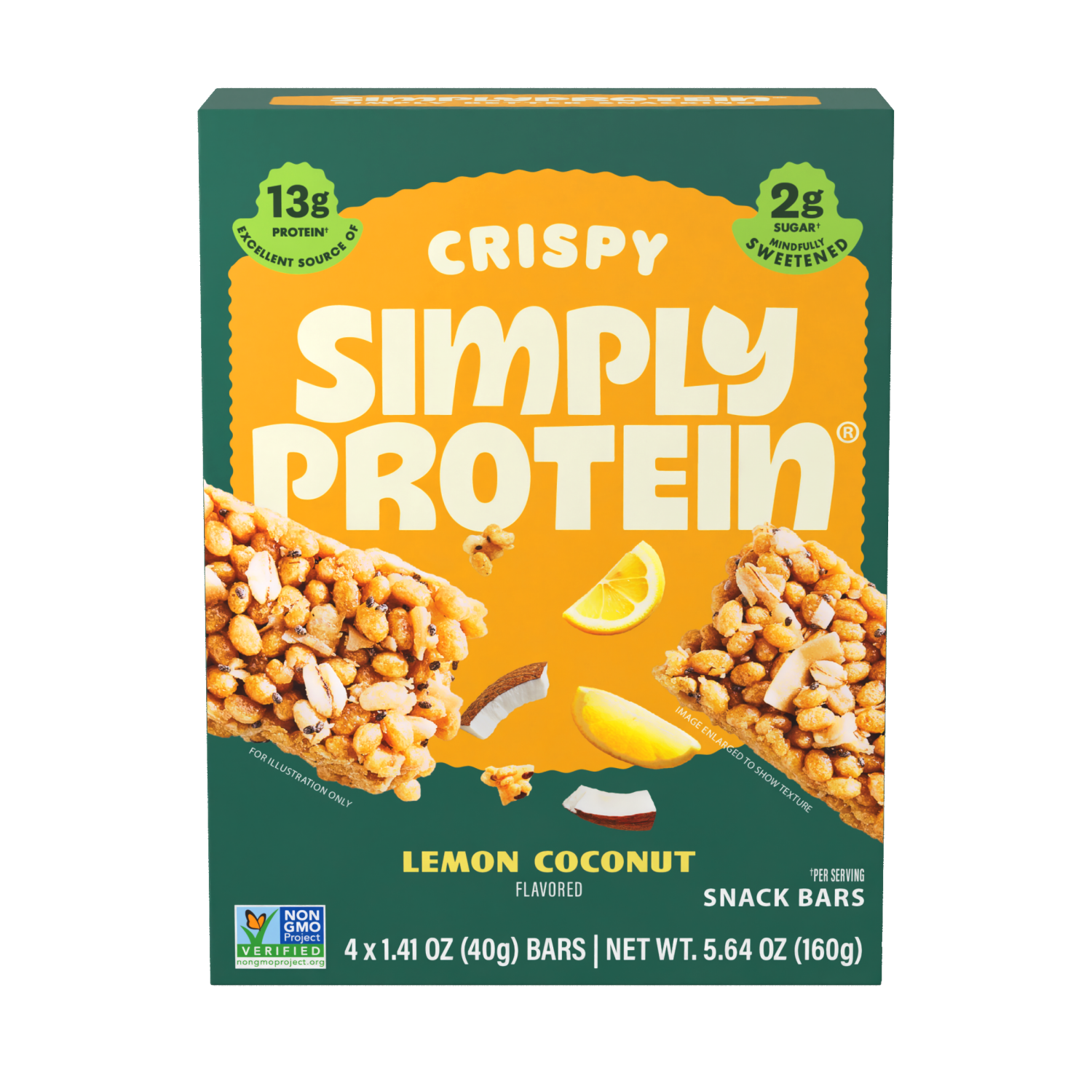 Simply Protein Lemon Coconut Crispy Snack Bars, 4 Pack