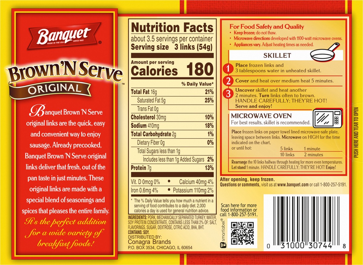 Banquet Brown N Serve Fully Cooked Original Sausage Links - 10-6.4 Oz