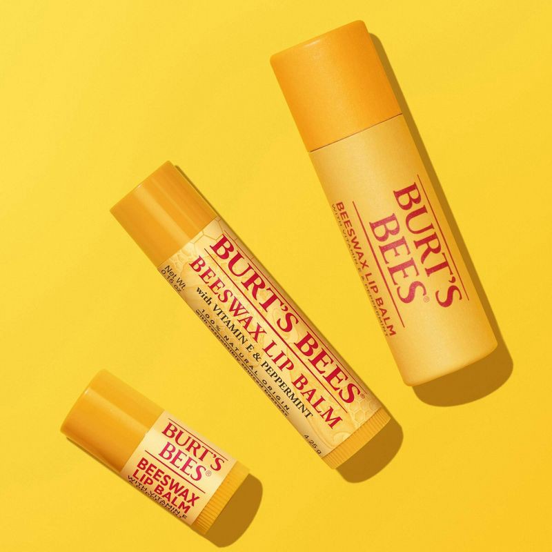Burt's Bees Beeswax Lip Balm instantly softens and hydrates your lips to help prevent dryness, cracking or chapping. Infused with responsibly sourced beeswax and vitamin E to richly moisturize and soo…