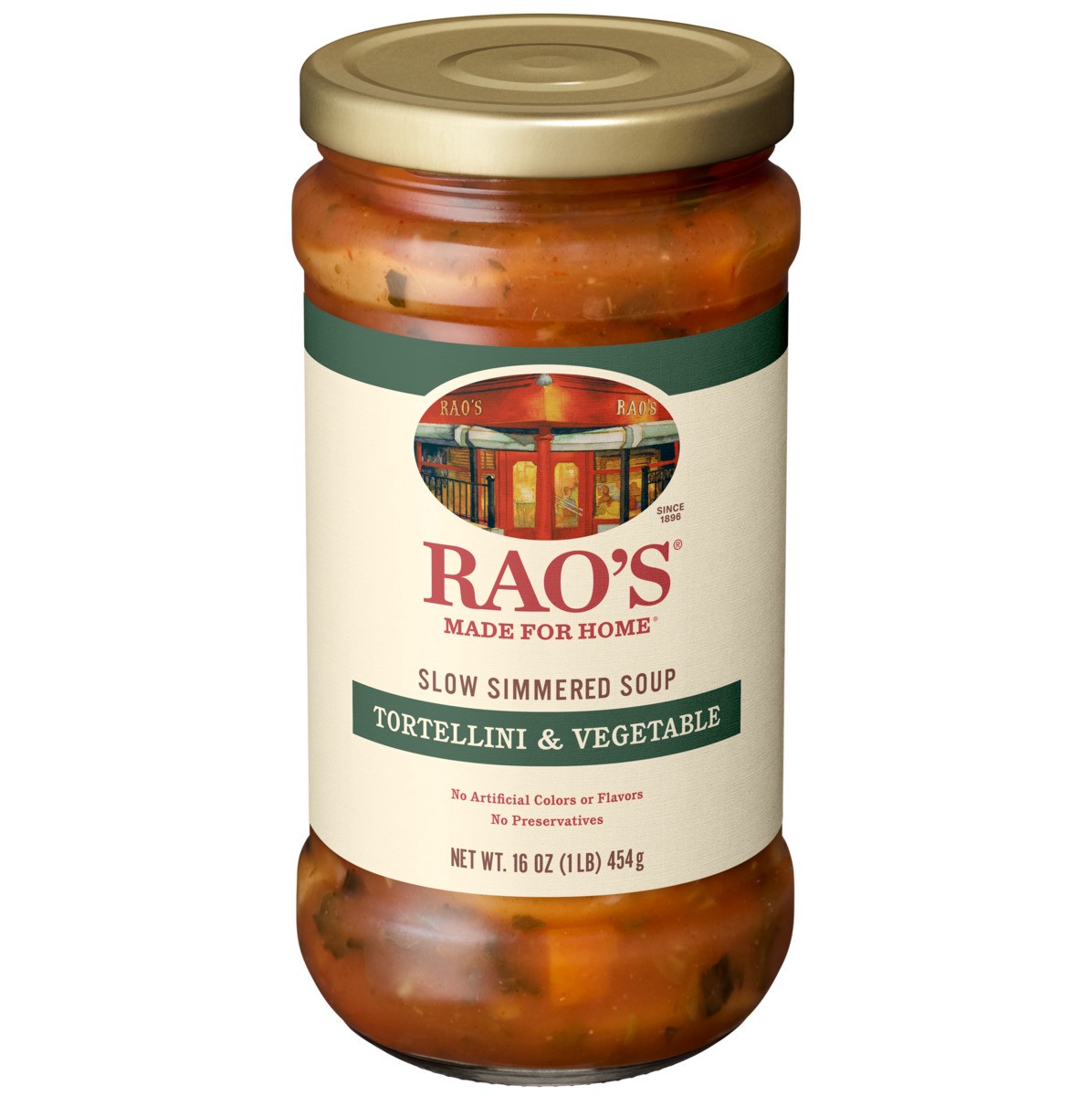 - Bring home the famous taste of Rao's with this 16 ounce jar of Rao's Made for Home Tortellini & Vegetable Soup