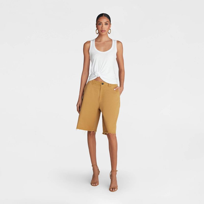 KBB by KAHLANA Women's Mid-Rise 'The Twill Bermuda Shorts' - Light Brown S