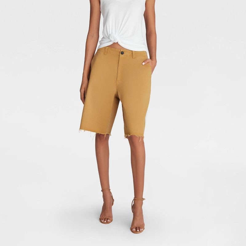 slide 1 of 3, KBB by KAHLANA Women's Mid-Rise 'The Twill Bermuda Shorts' - Light Brown S, 1 ct