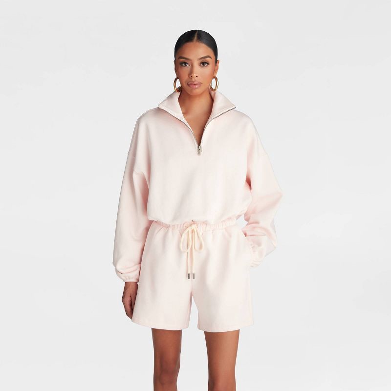KBB by KAHLANA Women's Pullover 'The Quarter Zip Sweatshirt' - Light Pink S
