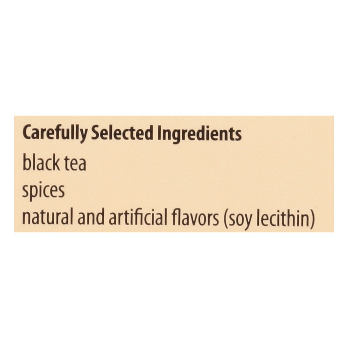 Carefully Selected Ingredients: Black Tea, Spices, Natural and Artificial Flavors (Soy Lecithin).