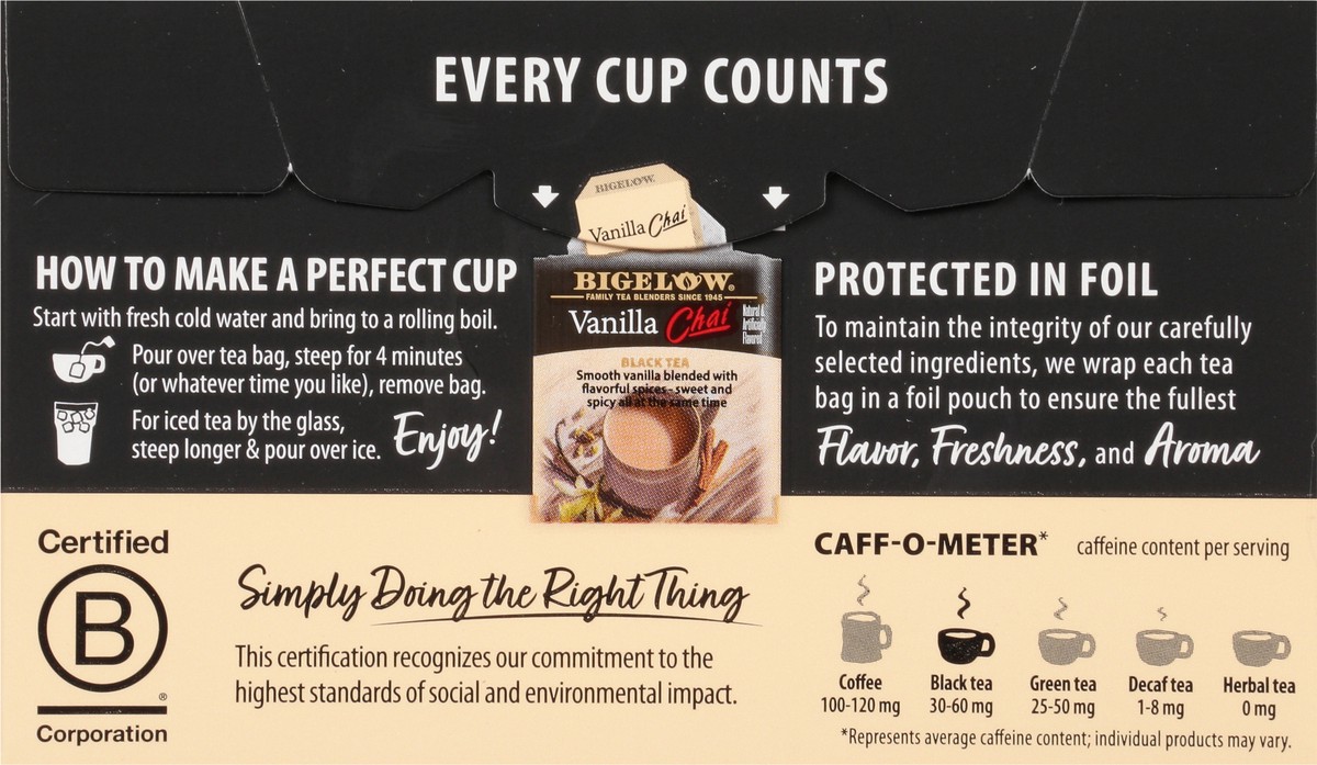 Bigelow Black Tea Bags Vanilla Chai 20 Count - 1.64 Oz