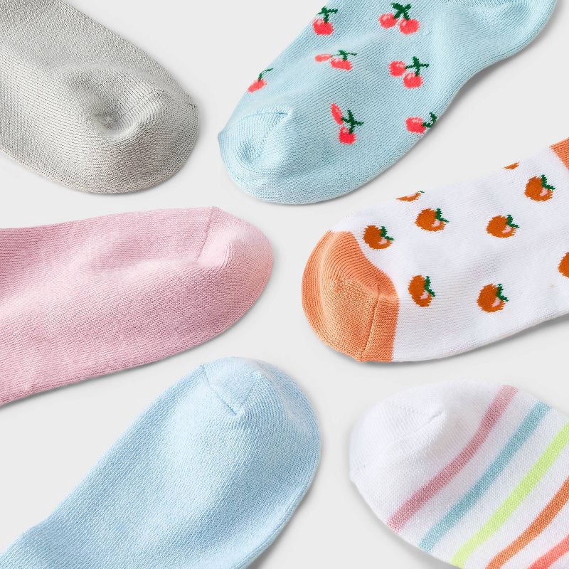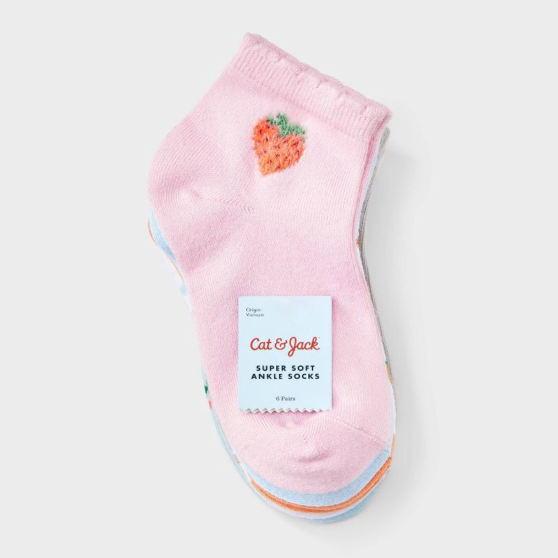 Girls' 6pk Striped Fruits Super Soft Ankle Socks - Cat & Jack™ Pink/Blue/White S