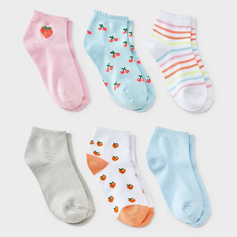 Add fun style to their sock drawer with these Super-Soft Fruits Printed Ankle Socks from Cat & Jack™. This six-pack set includes ankle socks in assorted colors featuring a variety of designs — solid s…
