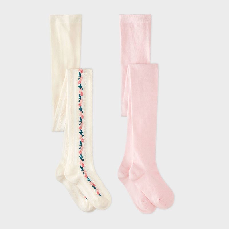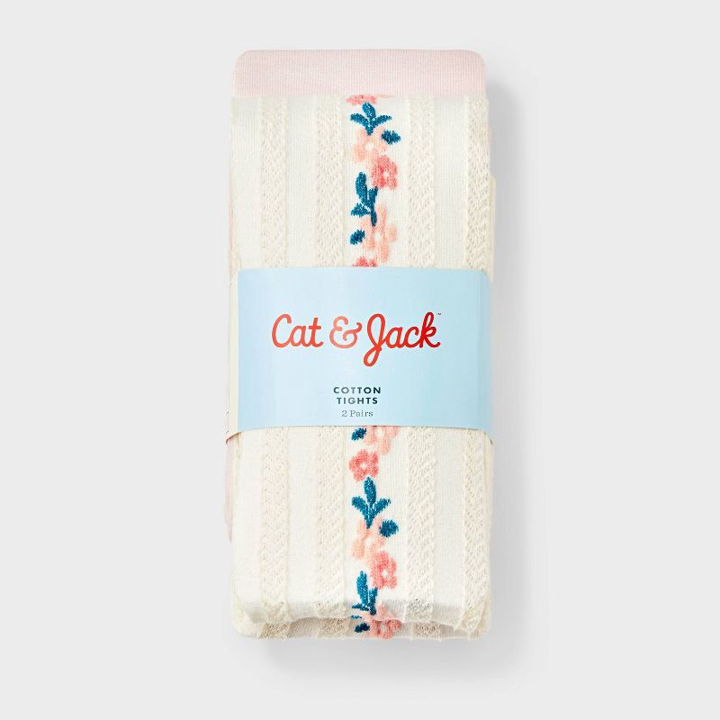 Stock up on your kid's essentials with these 2-Pack Floral Pointelle Tights from Cat & Jack™. Crafted from a soft blend of cotton, polyester and spandex knit fabric, the closed-toe pointelle tights ar…