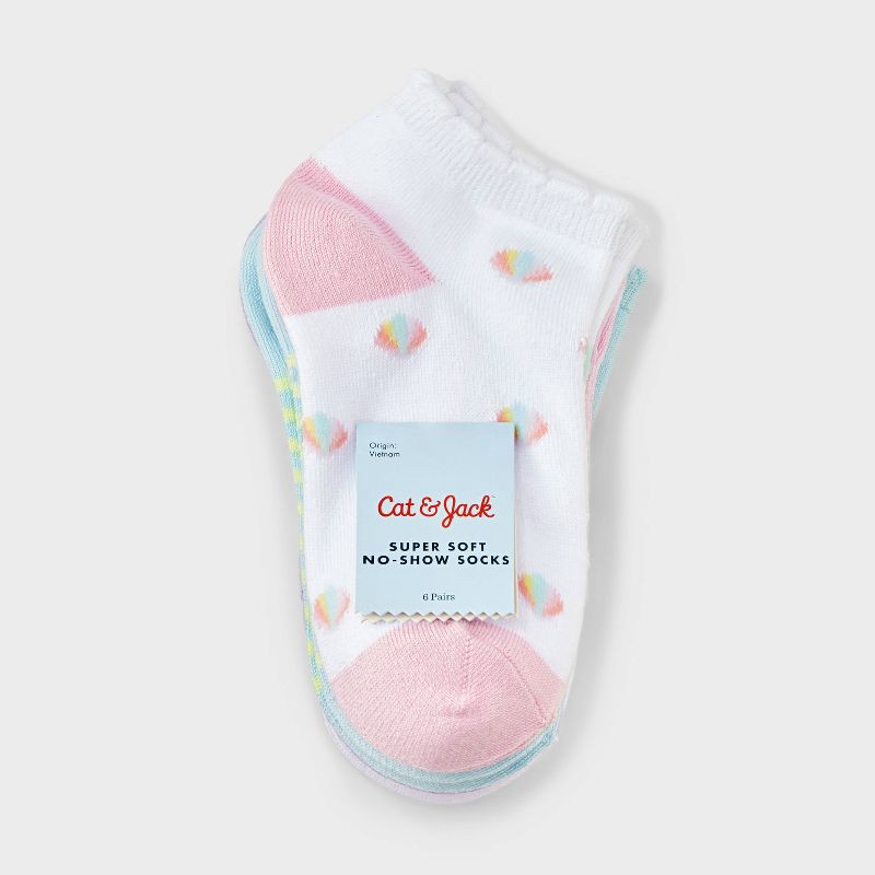 Stock up on playful style with these Super-Soft Shells Printed No-Show Socks from Cat & Jack™. This six-pack set includes no-show socks in assorted colors featuring a variety of designs — solid shades…