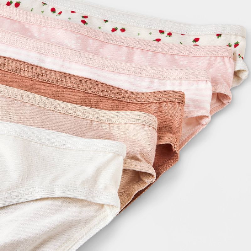 Girls' 14pk Strawberry Bikini Underwear - Cat & Jack™ Pink/Tan/Ivory 6