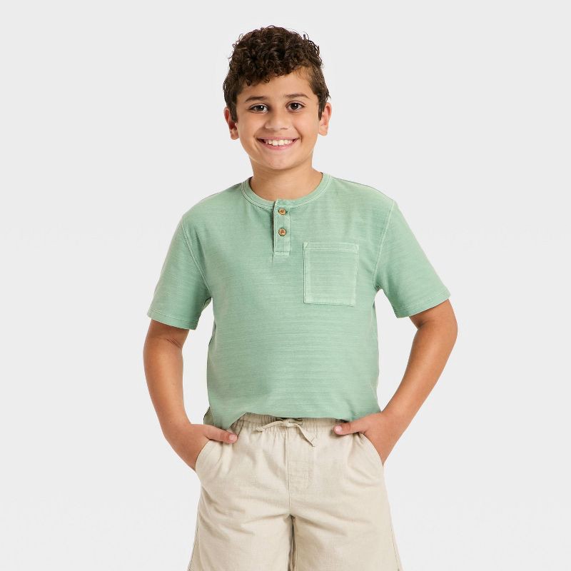 Boys' Short Sleeve Relaxed Fit Henley T-Shirt - Cat & Jack™ Mint Green M
