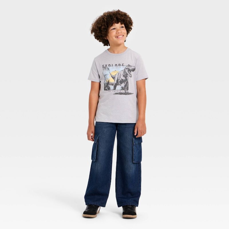 Boys' Short Sleeve Explore Dino Graphic T-Shirt - Cat & Jack™ Heather Gray M