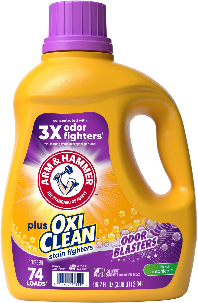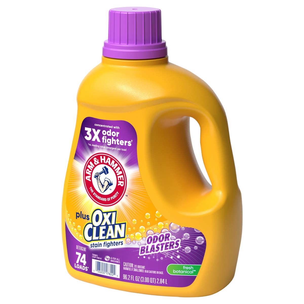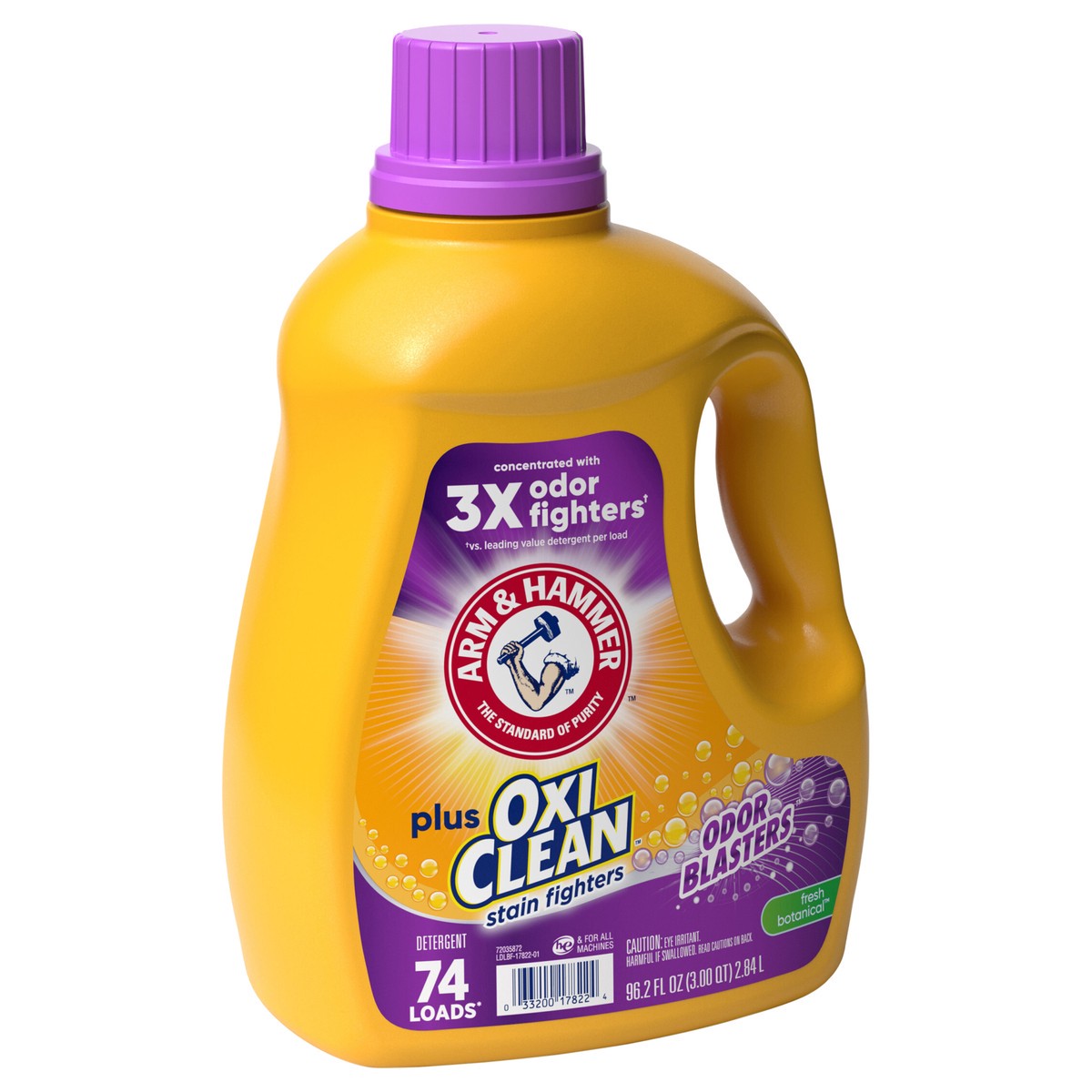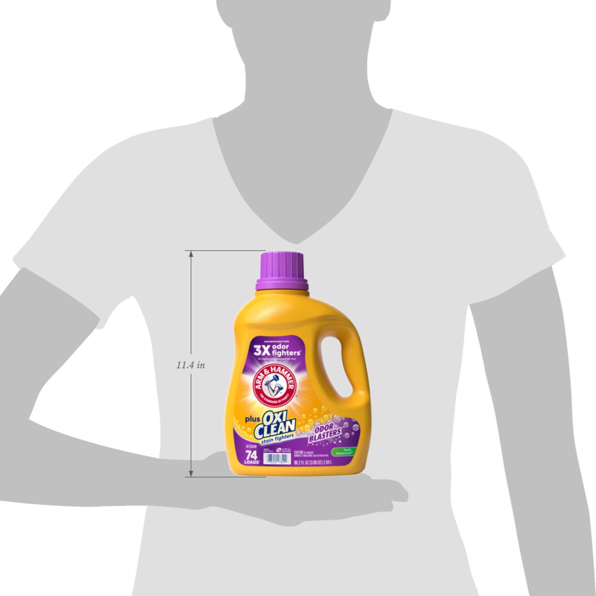 ARM & HAMMER Plus OxiClean with Odor Blasters Liquid Laundry Detergent is ideal for standard and High Efficiency (HE) washers. This concentrated laundry detergent boasts triple power: fights tough odo…