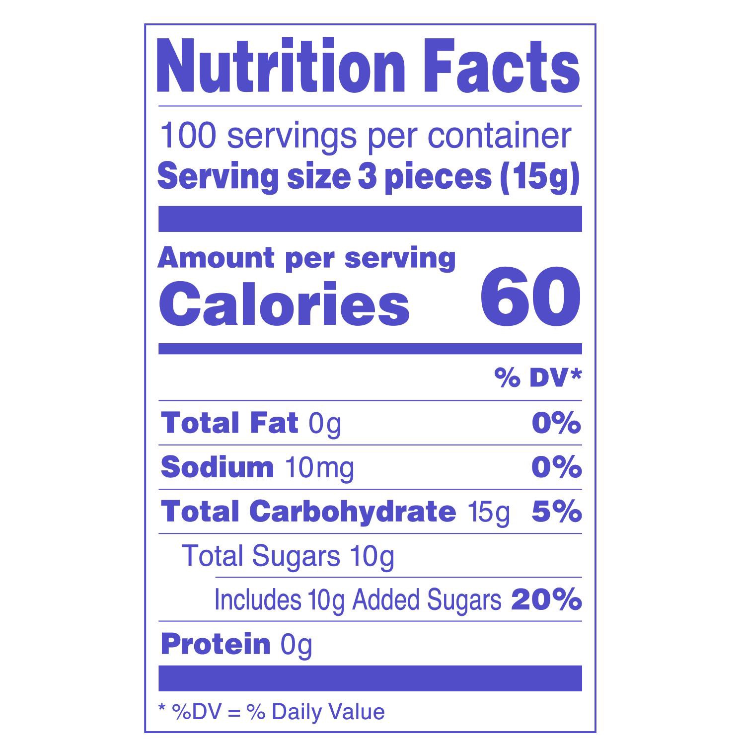Sugar, Corn Syrup, Citric Acid, Malic Acid, Salt, Artificial Flavor, Color Added, (Includes: Red 40, Yellow 6, Yellow 5, Blue 1)