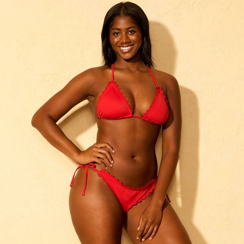 Tricot bikini bottom from Wild Fable™ accented with crochet-trim edges. Features side-tie fastenings to provide a personalized fit. Made from recycled polyester fabric with spandex for flexible comfor…