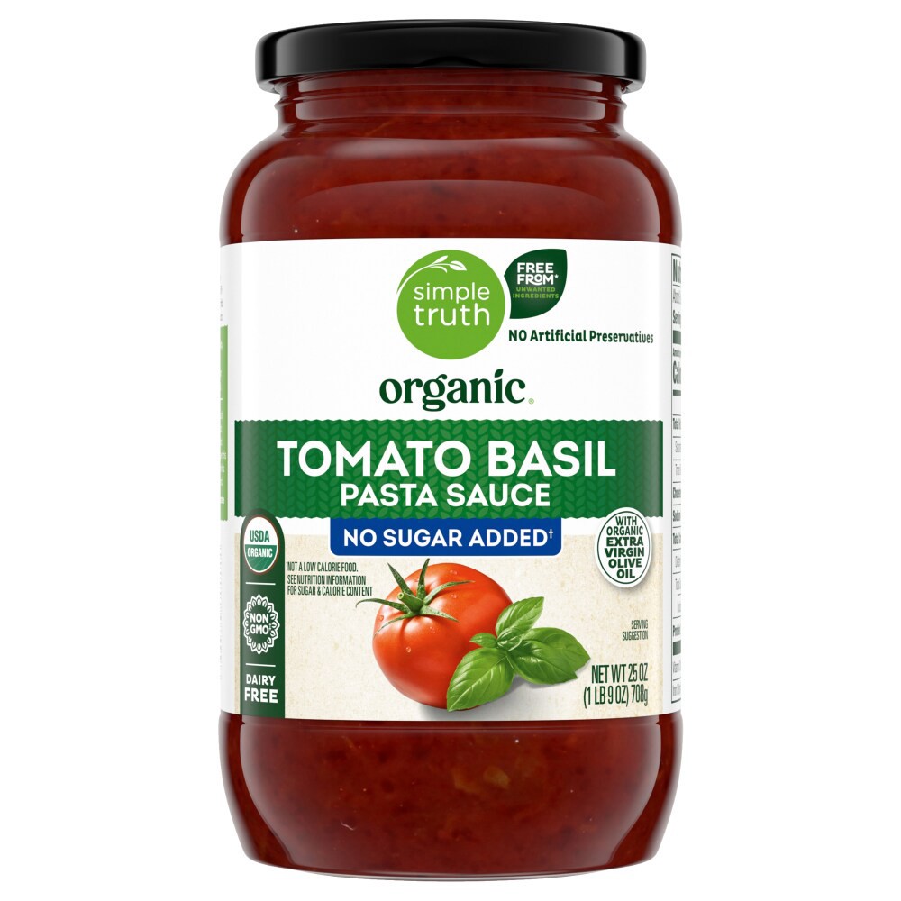 Simple Truth Organic® No Sugar Addedˆ Tomato Basil Pasta Sauce is a delicious addition to your favorite pasta. Containing no artificial preservatives this sauce gives you a flavor you can trust. USDA …