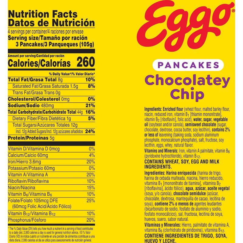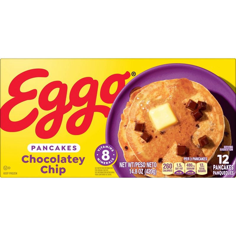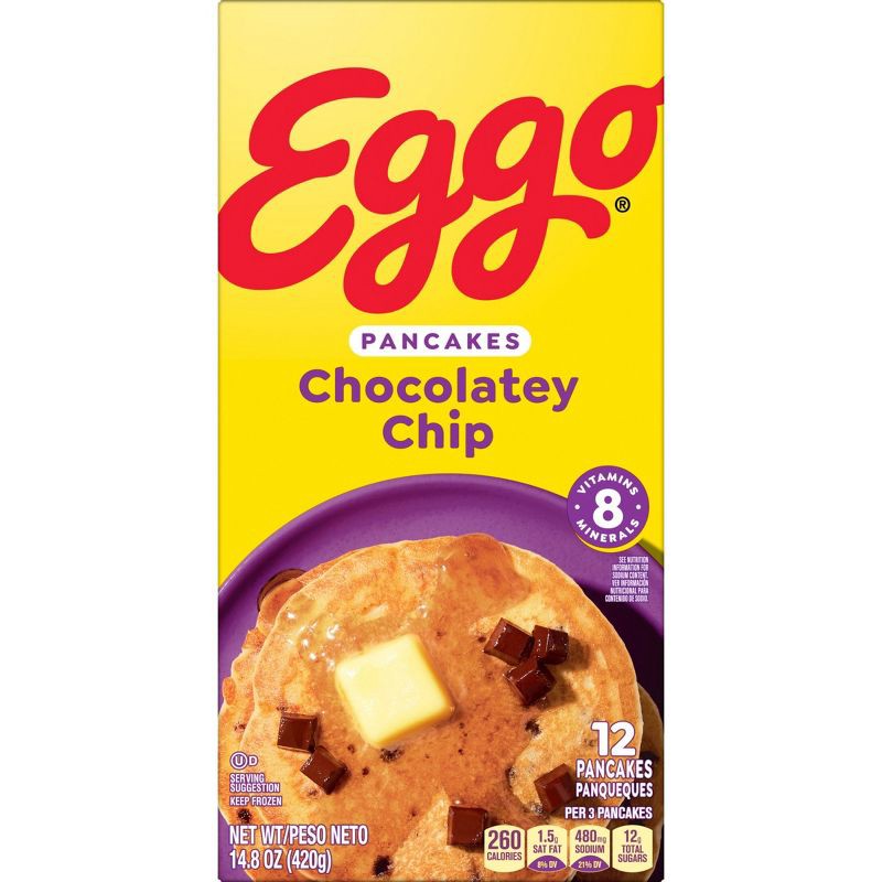 - Includes 1, 14.8oz box containing 12 Eggo Chocolatey Chip pancakes; Packaged for freshness and great taste