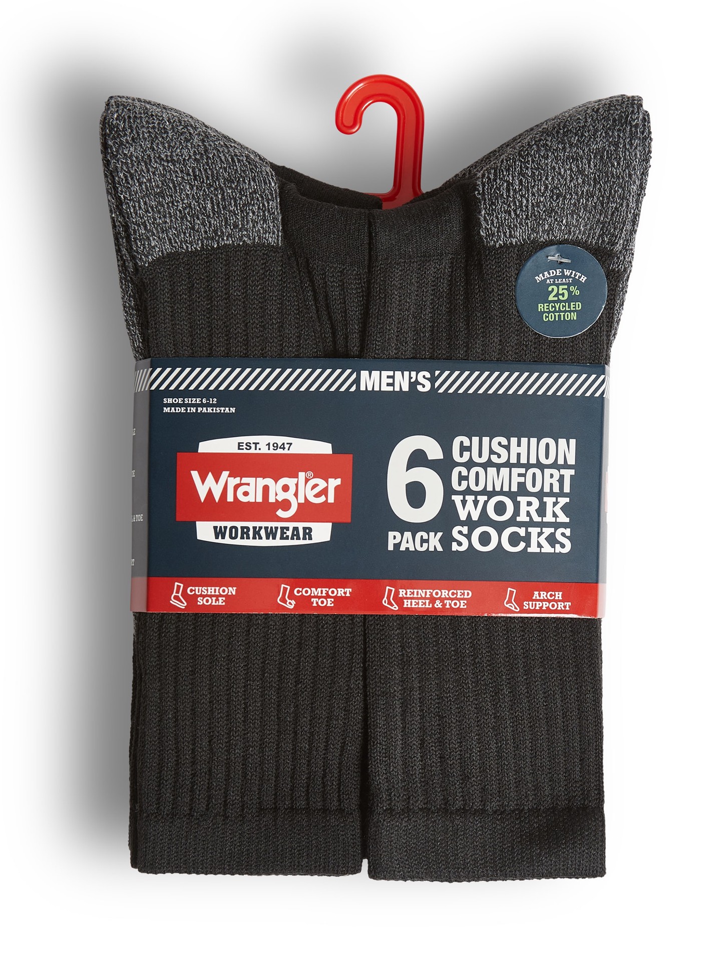 Wrangler Men's M Cotton polyester blend Crew Socks 6 -Pack