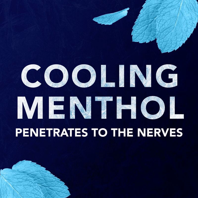- FAST-ACTING RELIEF: Cooling menthol penetrates to your nerves for fast pain relief from arthritis pain, backaches, bruises, sprains and strains