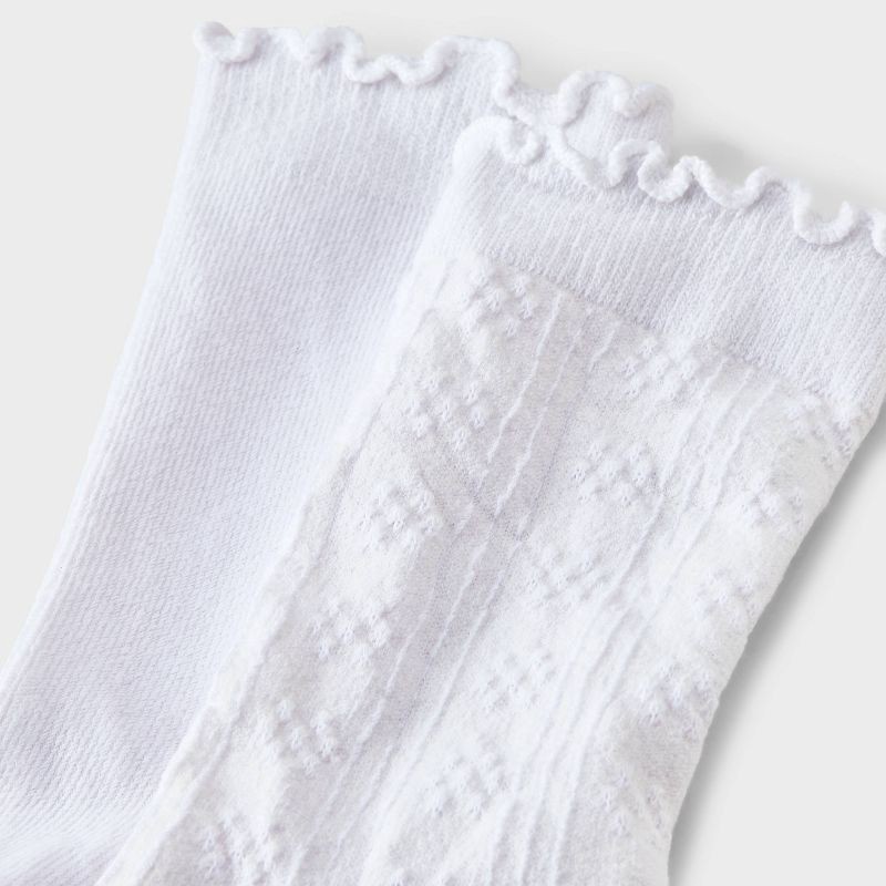 - Pointelle lettuce-edge crew dress socks in bright white