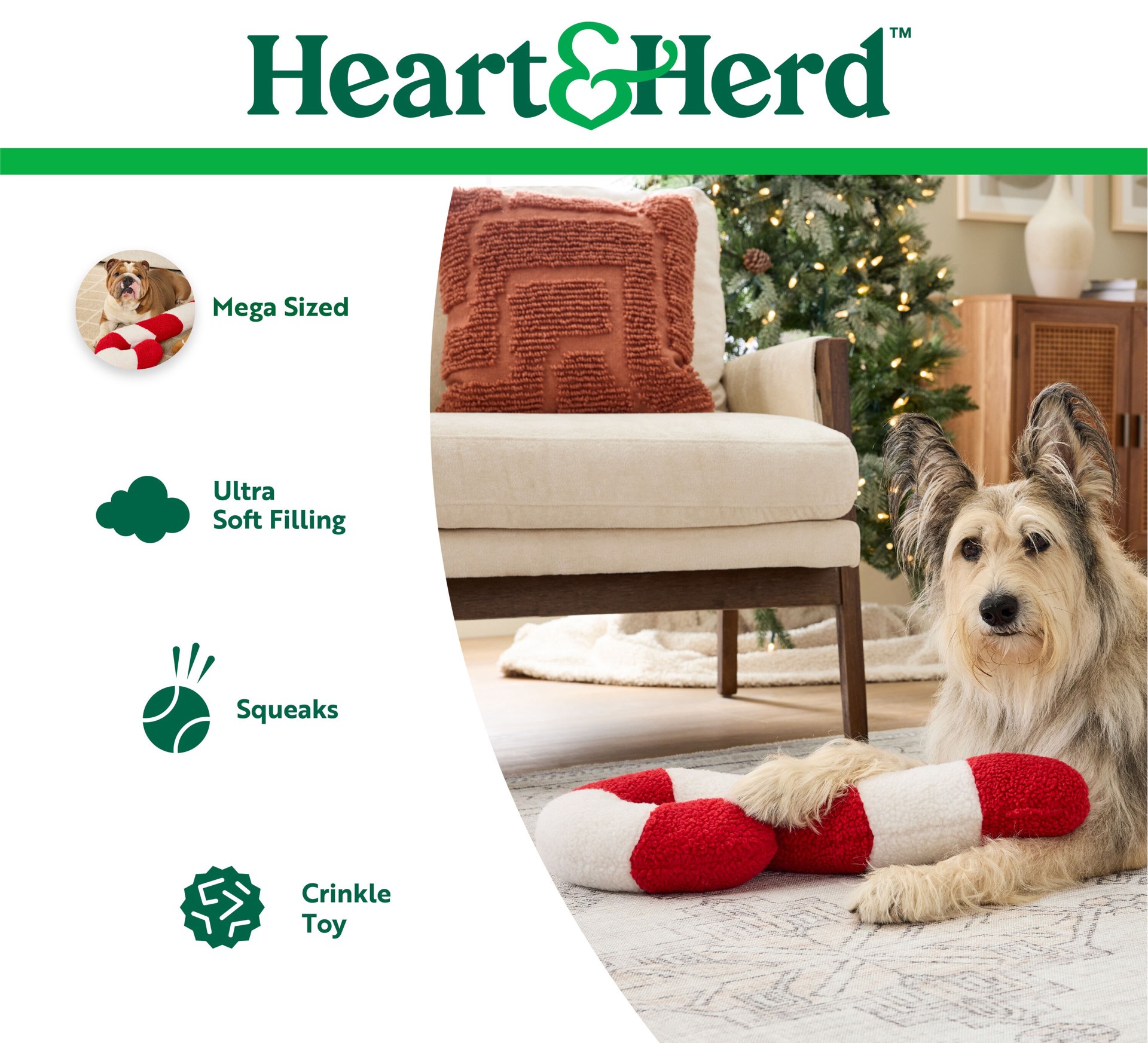 Heart & Herd Candy Cane Mega Plush Dog Toy with Squeaker.. Captivate your dog's interest for thrilling play - the ideal solution to keep your pet active this holiday season and beyond.. Crafted from u…