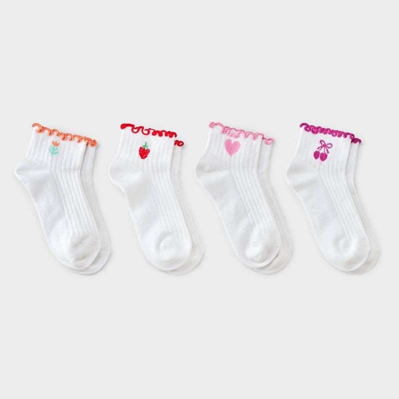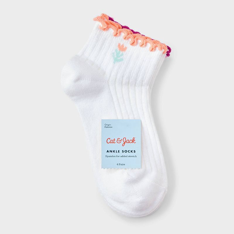 Girls' 4pk Icons Lettuce Edge Ankle Socks - Cat & Jack™ White M
