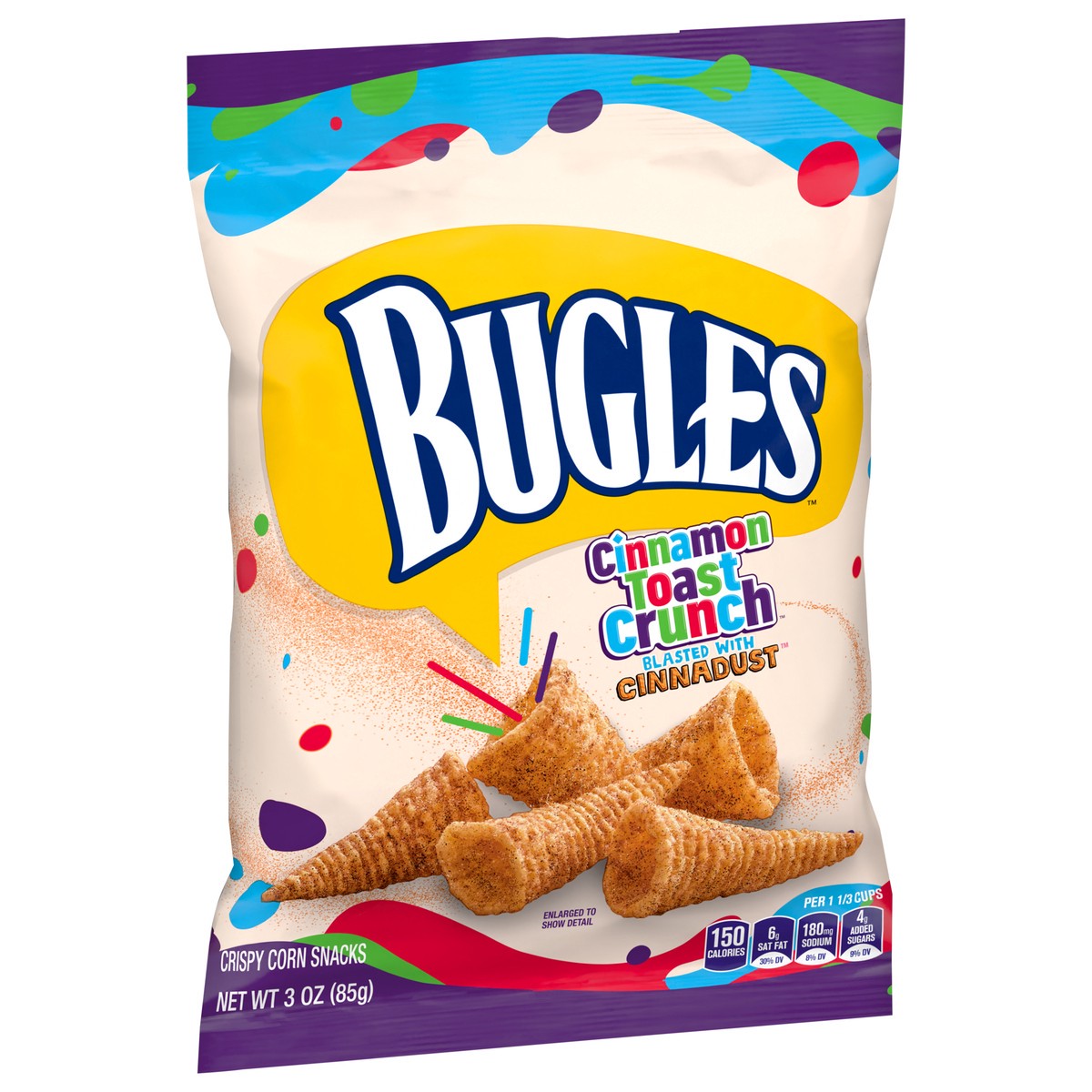 Bugles Cinnamon Toast Crunch Crispy Corn Snacks, Snack Bag, 3 oz