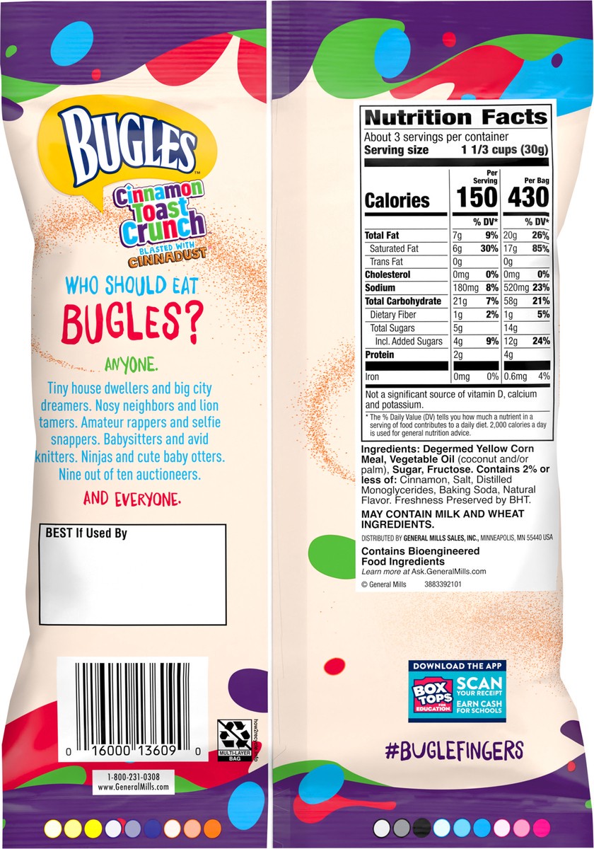 Bugles Corn Snacks, Cinnamon Toast Crunch, Crispy