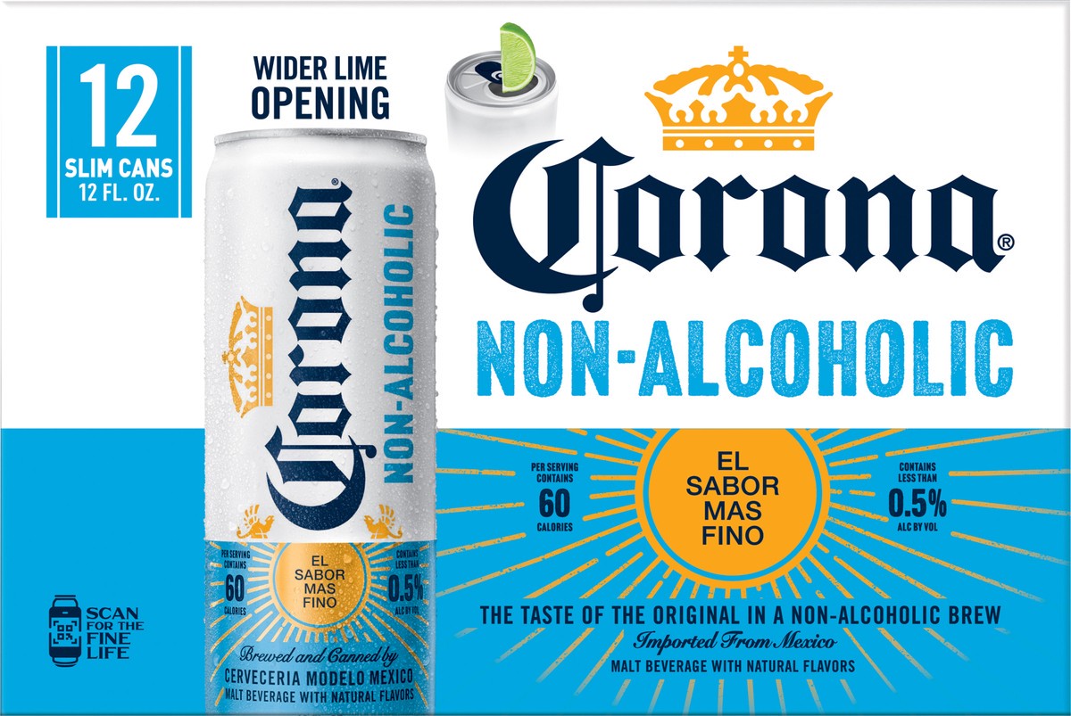- Balanced flavor as Corona ExtraNon-alcoholic malt beverage with natural flavorsSlim cans with wider lime openings—made for enjoying the refreshing combination of Corona and limeCorona Non-Alcoholic: El Sabor Más Fino