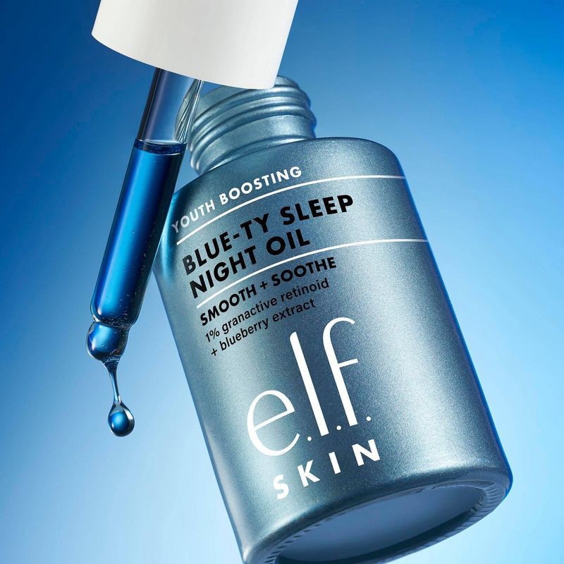 Put fine lines and wrinkles to bed. e.l.f. SKIN Youth Boosting Blue-ty Sleep Night Oil is a gentle yet effective face oil with 1% granactive retinoid to help reduce the look of fine lines, uneven text…