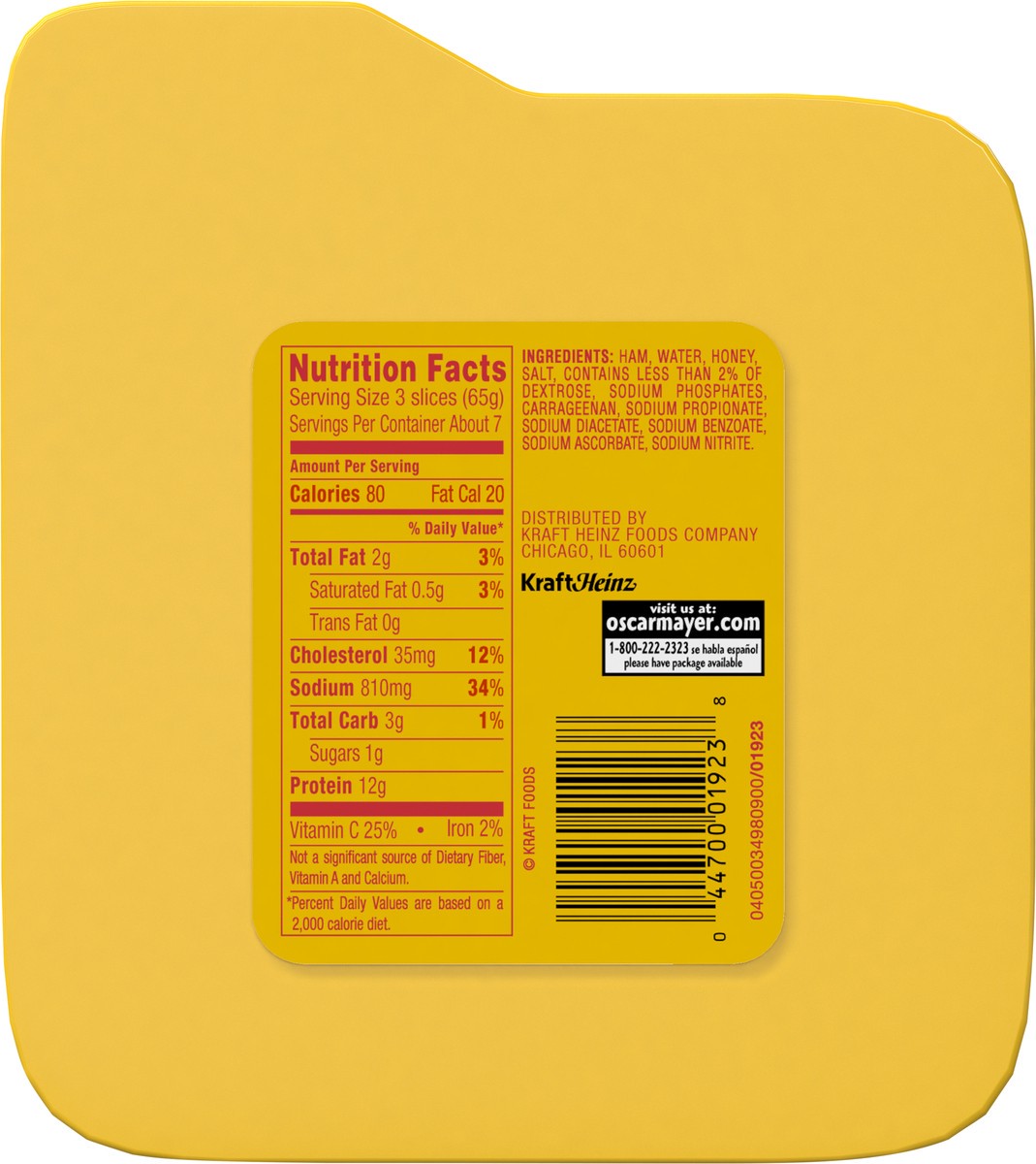 Oscar Mayer Honey Ham is quality lean lunch meat. With 80 calories per serving (3 slices), sliced honey ham makes a delicious and flavorful addition to a deli sandwich. Oscar Mayer Honey Ham is perfec…