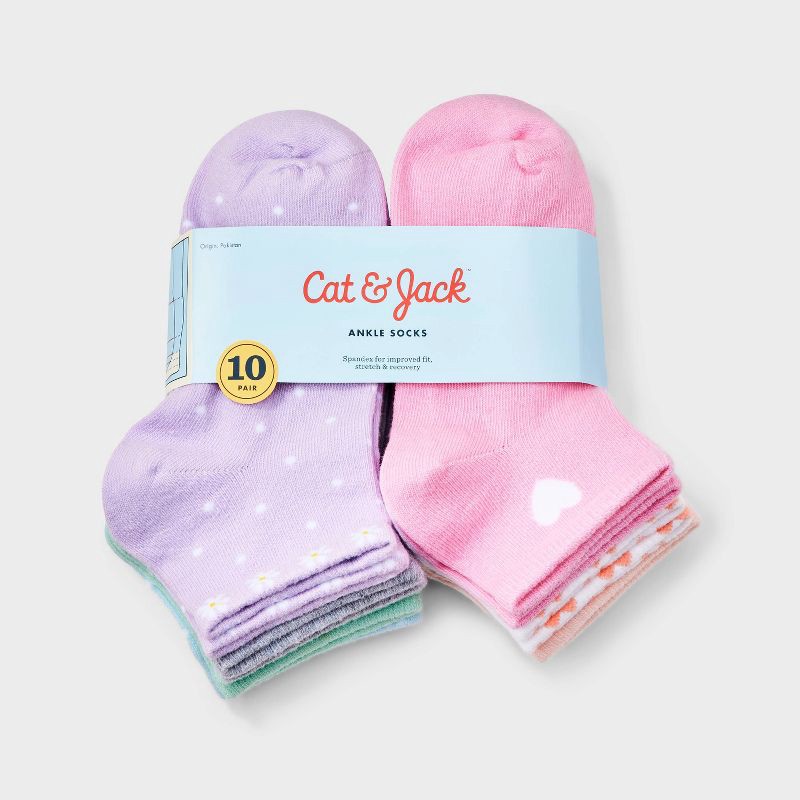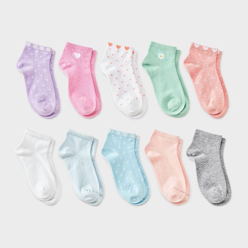 Girls' 10pk Floral & Hearts Ankle Socks - Cat & Jack™ Assorted Colors S