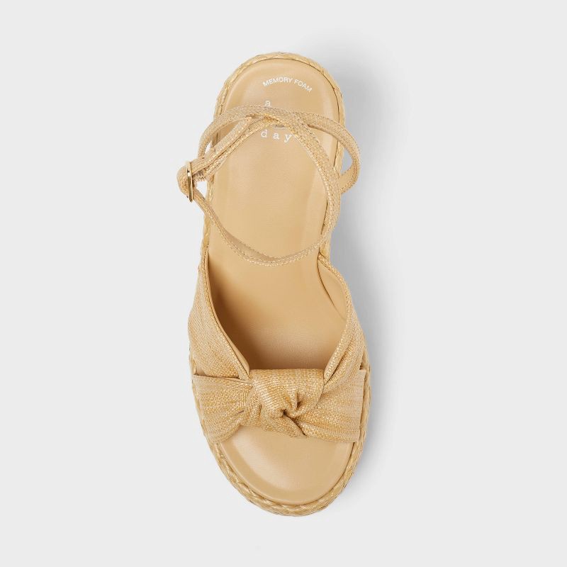 Add drama and a lot of confidence to each step with these Nisha Platform Heels from A New Day™. Boasting a knotted crisscross top band for an elegant touch, these round-toe feature open toes and memor…