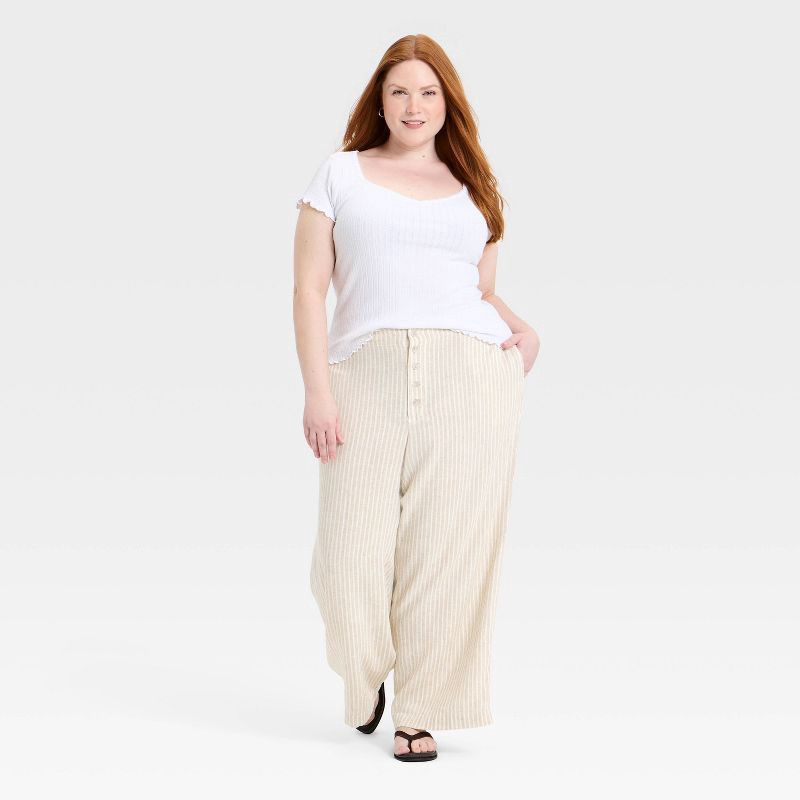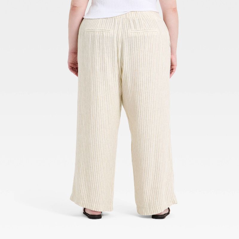 Women's Mid-Rise Linen Straight Leg Pull-On Pants - Universal Thread™ Tan Striped XXL